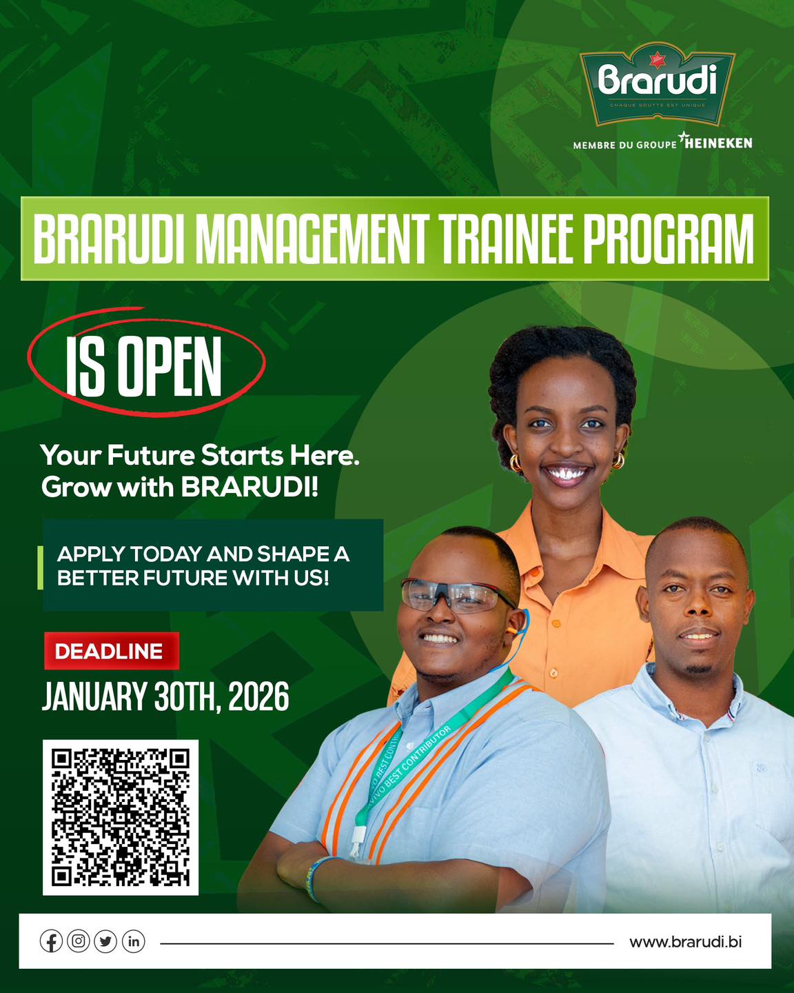 BRARUDI, membre du Groupe HEINEKEN, lance une nouvelle édition de son prestigieux Programme Management Trainee, une opportunité unique conçue pour révéler les talents de demain.